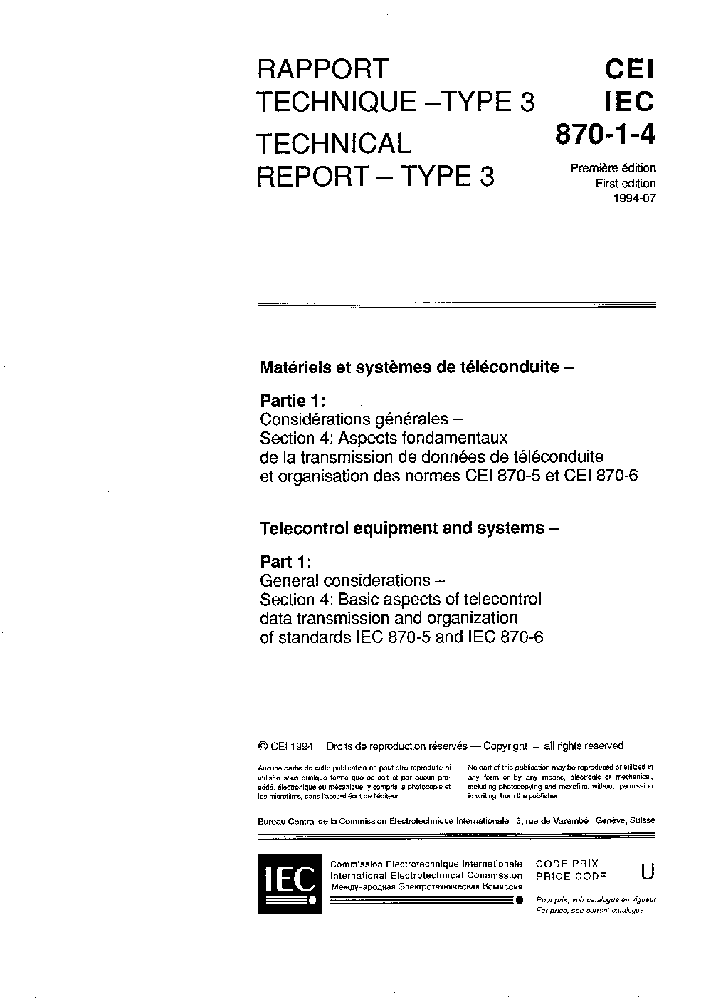 IEC TR 60870-1-4:1994