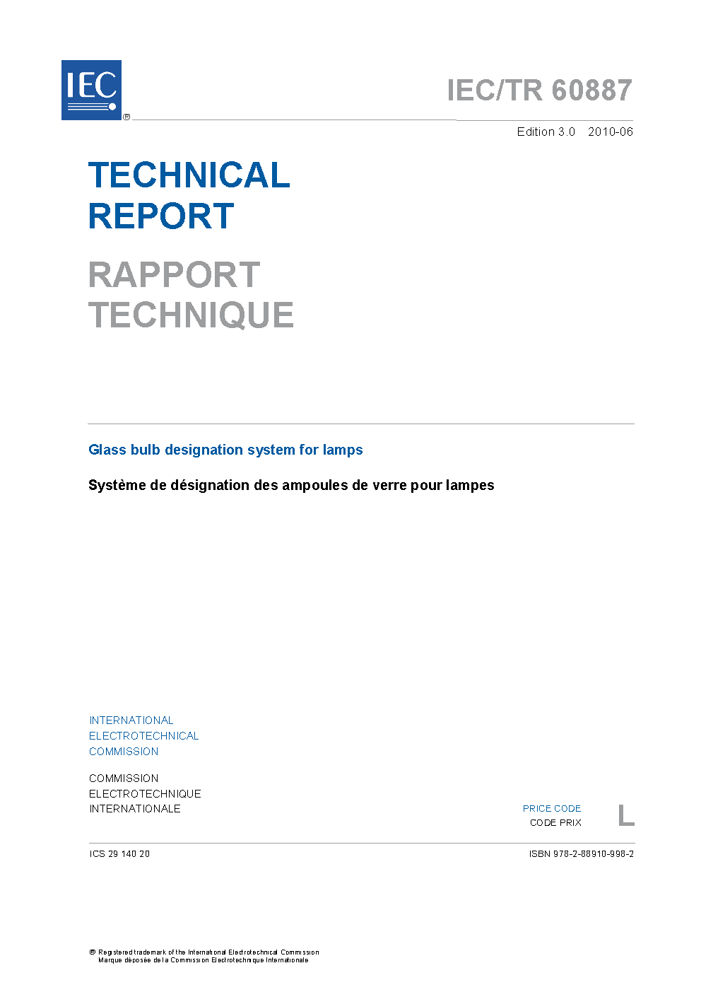 IEC TR 60887:2010 Glass bulb designation system for lamps
