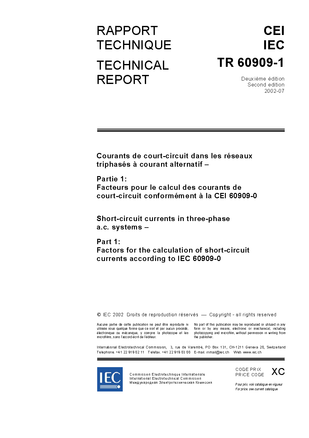 IEC TR 60909-1:2002 Short-circuit currents in three-phase a.c. systems - Part 1: Factors for the calculation of short-circuit currents according to IEC 60909-0