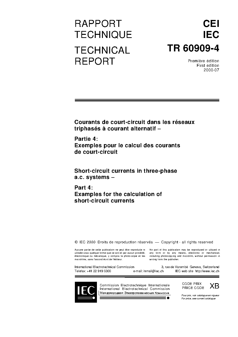IEC TR 60909-4:2000 Short-circuit currents in three-phase a.c. systems - Part 4: Examples for the calculation of short-circuit currents