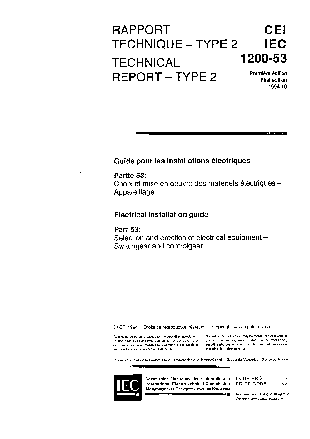 IEC TR 61200-53:1994/COR1:1995 Corrigendum 1 - Electrical installation guide - Part 53: Selection and erection of electrical equipment - Switchgear and controlgear