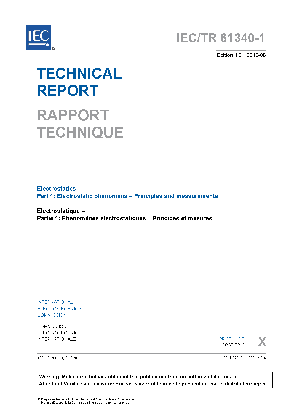 IEC TR 61340-1:2012/COR1:2013 Corrigendum 1 - Electrostatics - Part 1: Electrostatic phenomena - Principles and measurements