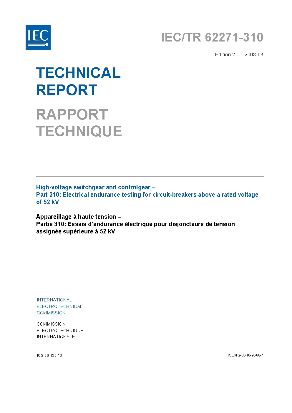 IEC TR 62271-310:2008 High-voltage switchgear and controlgear - Part 310: Electrical endurance testing for circuit-breakers above a rated voltage of 52 kV