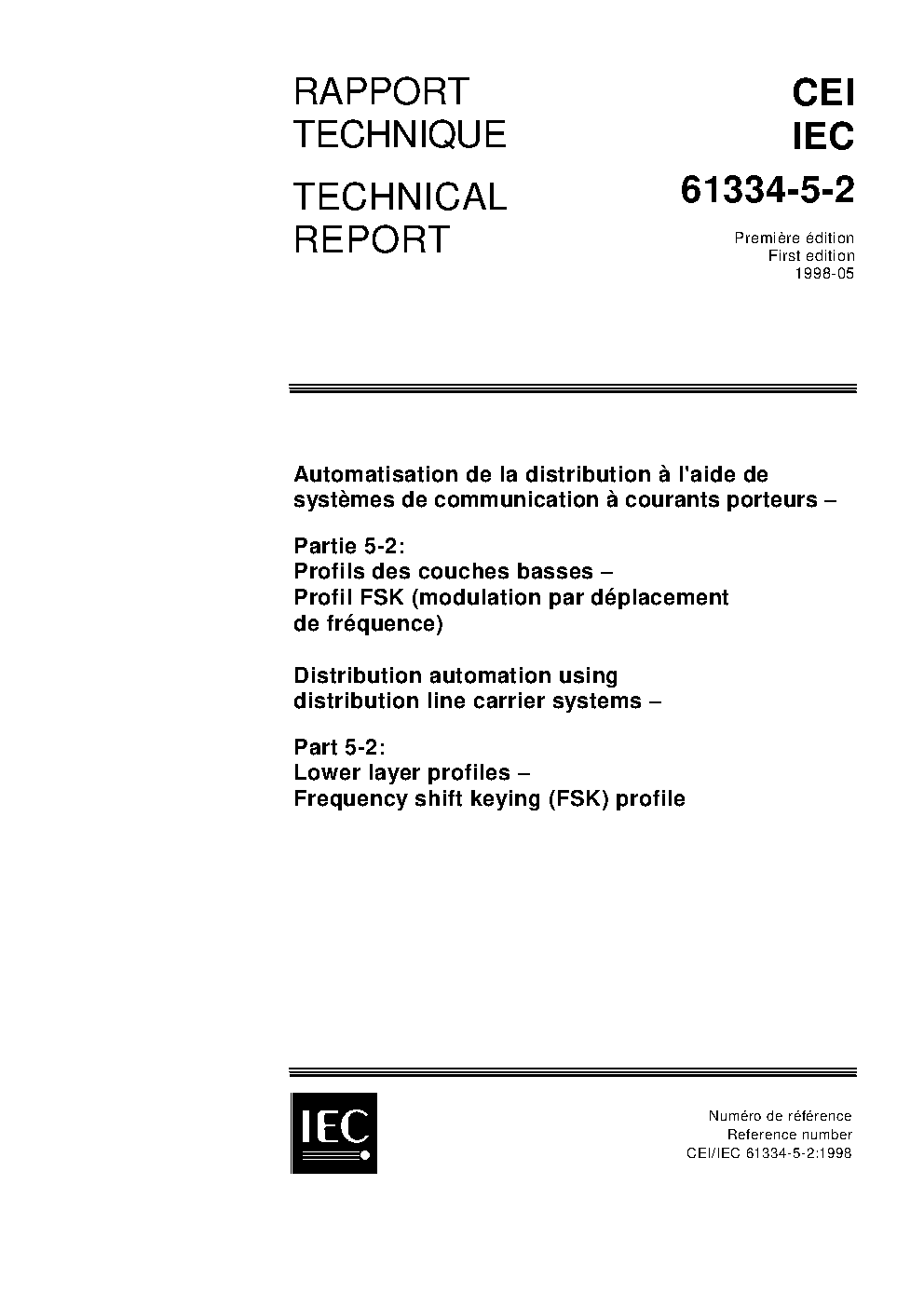 IEC TS 61334-5-2:1998 Distribution automation using distribution line carrier systems - Part 5-2: Lower layer profiles - Frequency shift keying (FSK) profile