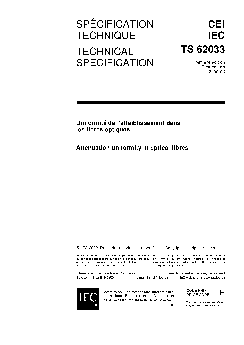 IEC TS 62033:2000 Attenuation uniformity in optical fibres
