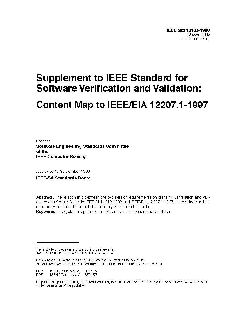 IEEE Standard for Software Verification and Validation - Content Map to IEEE 12207.1