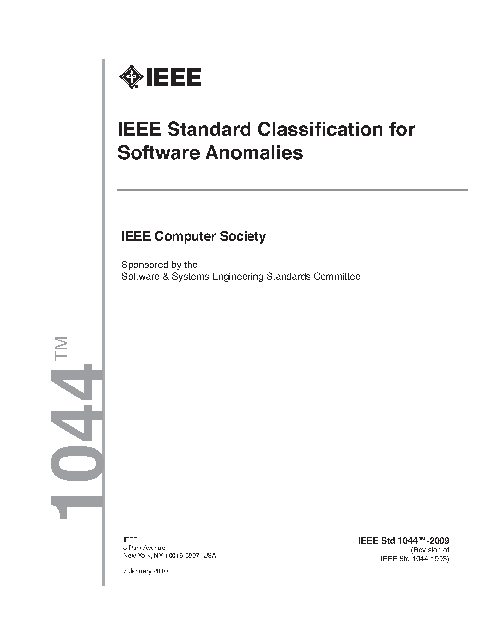 The purpose of this standard is to define a common vocabulary with which different people and organizations can communicate effectively about software anomalies and to establish a common set of attributes that support industry techniques for analyzing software defect and failure data.The purpose of this standard is to define a common vocabulary with which different people and organizations can communicate effectively about software anomalies and to establish a common set of attributes that support industry techniques for analyzing software defect and failure data.