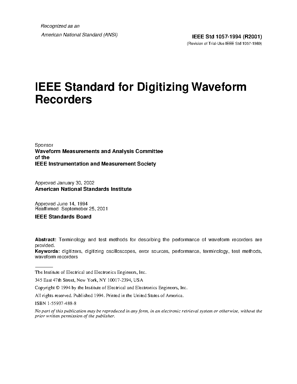 IEEE Standard for Digitizing Waveform Recorders