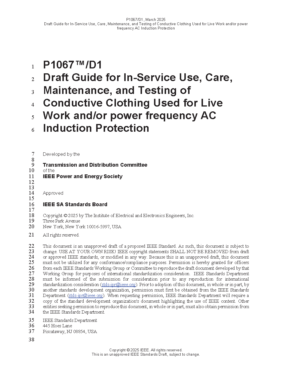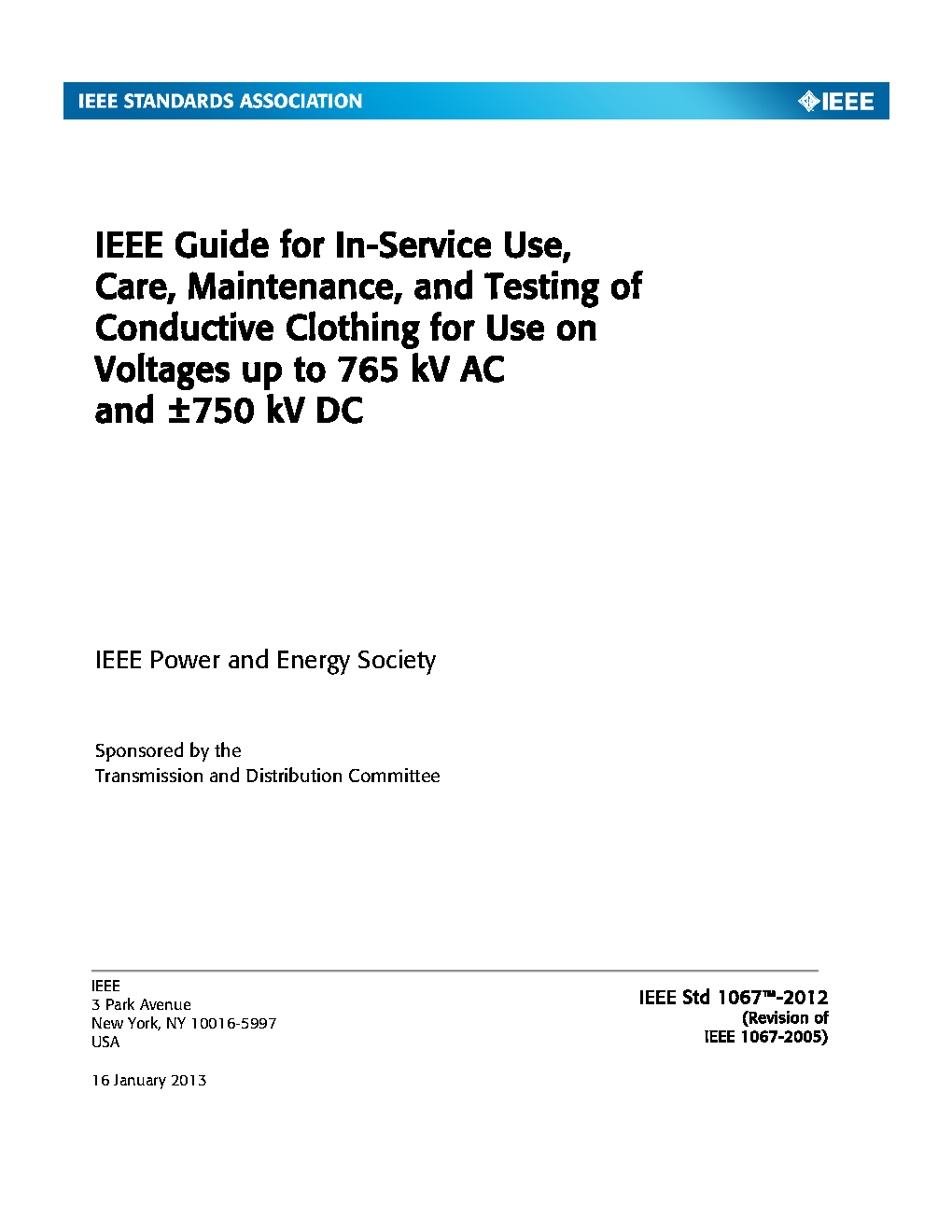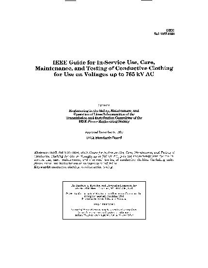 IEEE Guide for In-Service Use, Care, Maintenance, and Testing of Conductive Clothing for Use on Voltages up to 765 kV AC