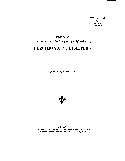 IEEE Trial Use Proposed Recommended Guide for Specification of ELECTRONIC VOLTMETERS