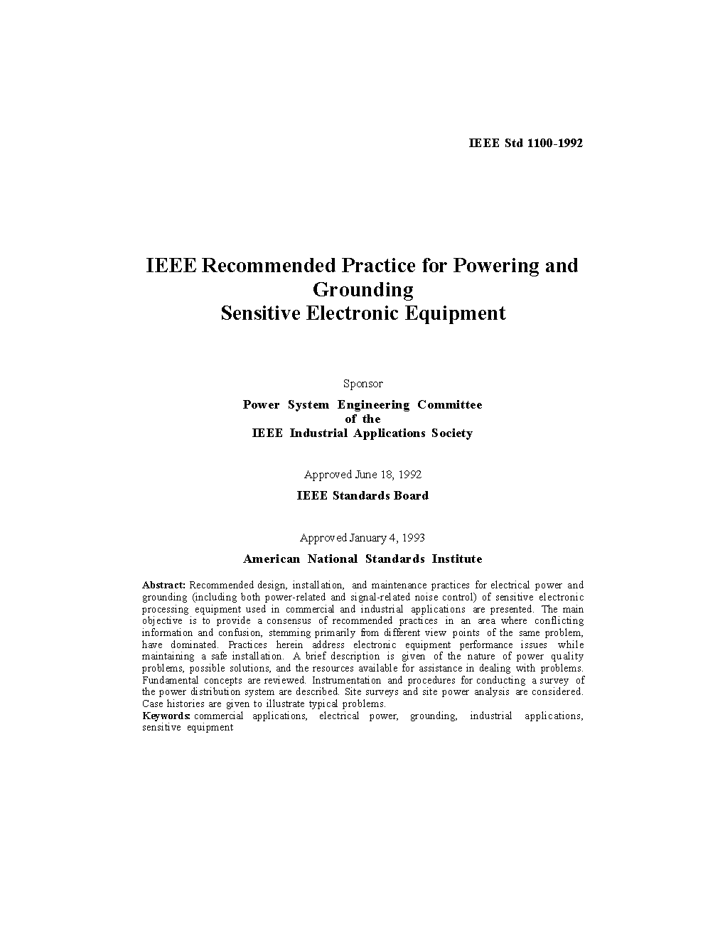 IEEE Recommended Practice for Powering and Grounding Electronic Equipment
