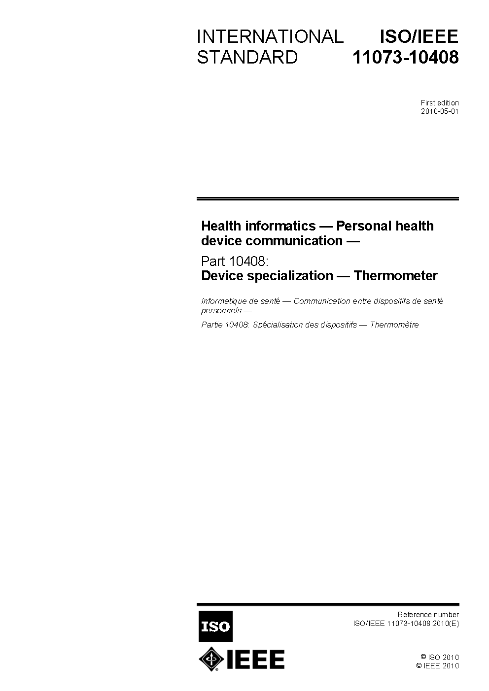 IEEE Health informatics--Personal health device communication Part 10408: Device specialization--Thermometer