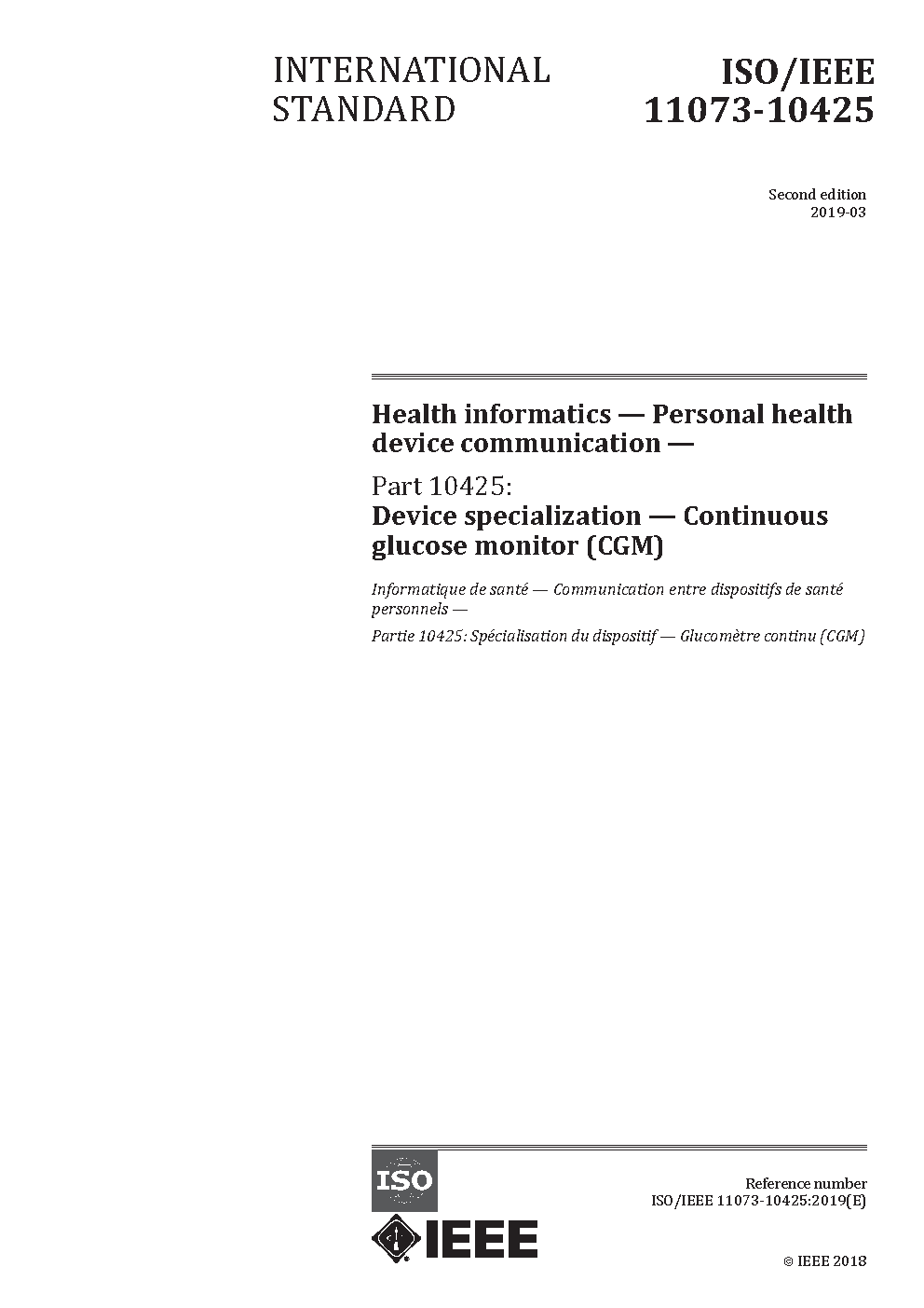 IEEE Health informatics--Personal health device communication - Part 10425: Device Specialization--Continuous Glucose Monitor (CGM)