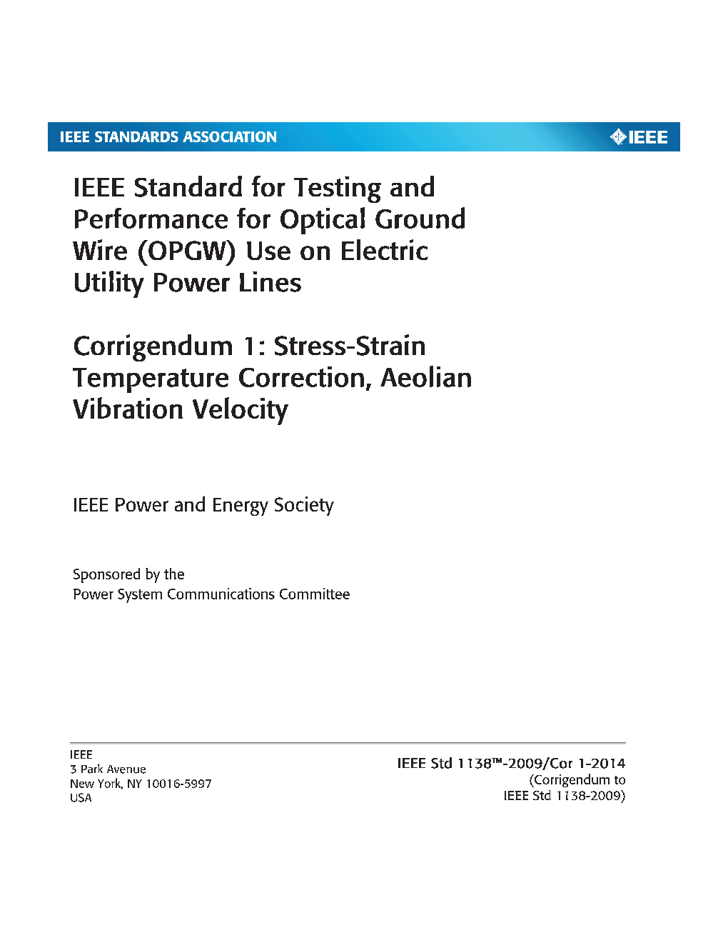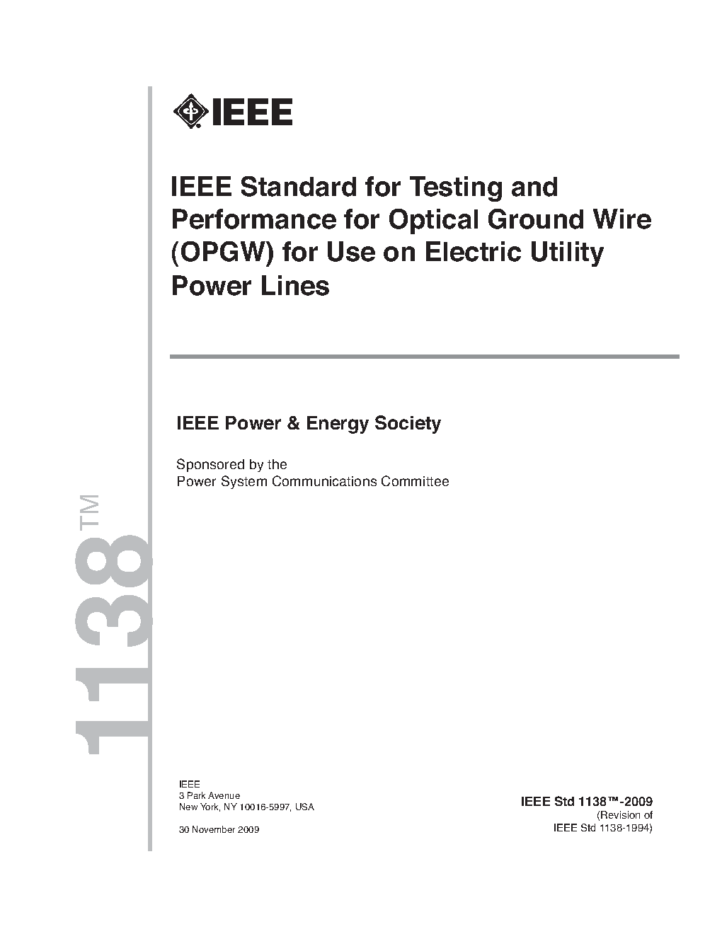 This standard covers the performance, test requirements, procedures, and acceptance criteria for a transmission line overhead ground wire (a.k.a. shield wire, static wire, earth wire, skywire) with optical fibers commonly known as optical ground wire (OPGW). An OPGW cable has the dual performance functions of a ground wire with telecommunications capabilities.