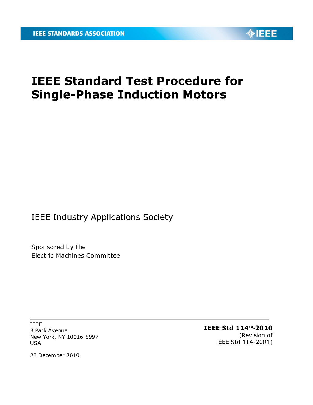 IEEE Standard Test Procedure for Single-Phase Induction Motors