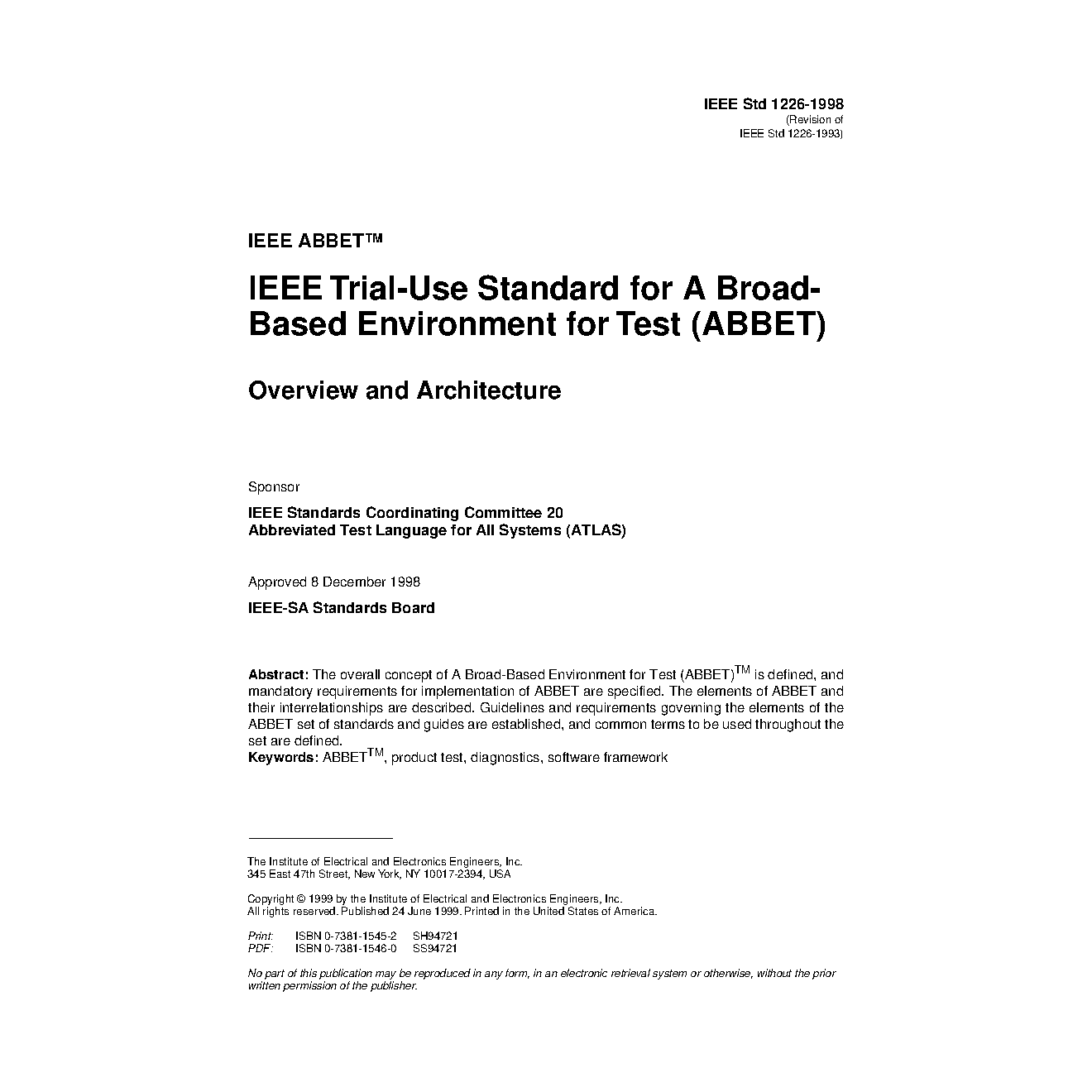 IEEE ABBET(TM) Trial-Use Standard for A Broad-Based Environment for Test (ABBET) Overview and Architecture