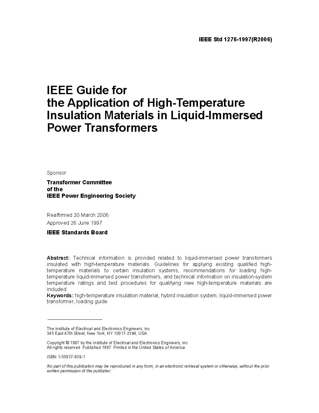 IEEE Guide for the Application of High-Temperature Insulation Materials in Liquid-Immersed Distribution, Power, and Regulating Transformers