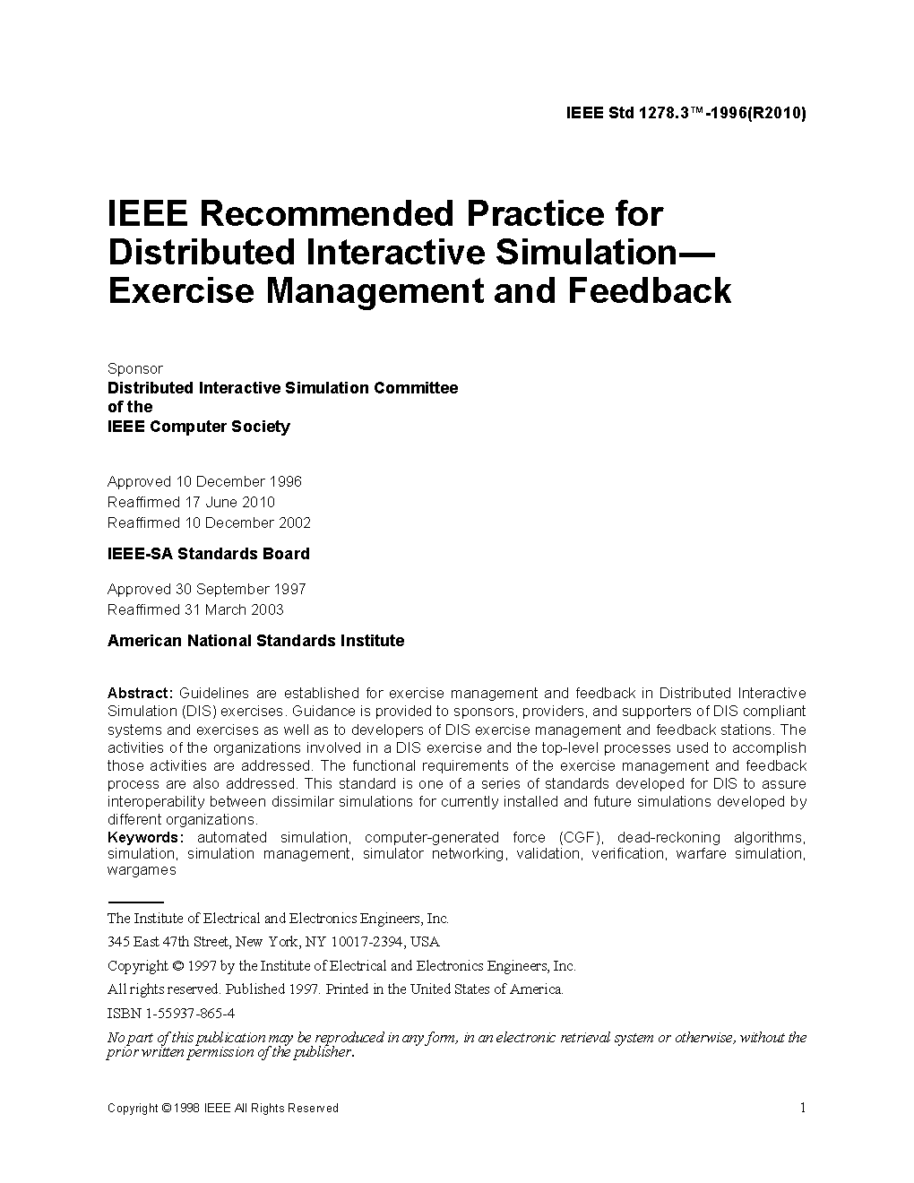 IEEE Recommended Practice for Distributed Interactive Simulation - Exercise Management and Feedback