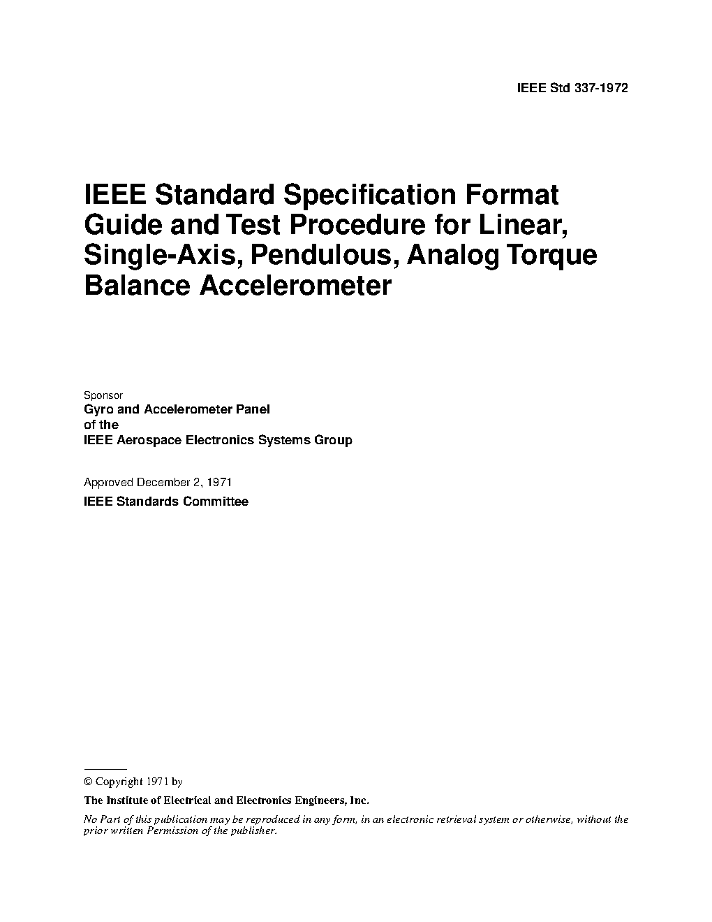 IEEE Standard Specification Format Guide and Test Procedure for Linear, Single-Axis, Non-Gyroscopic Accelerometers