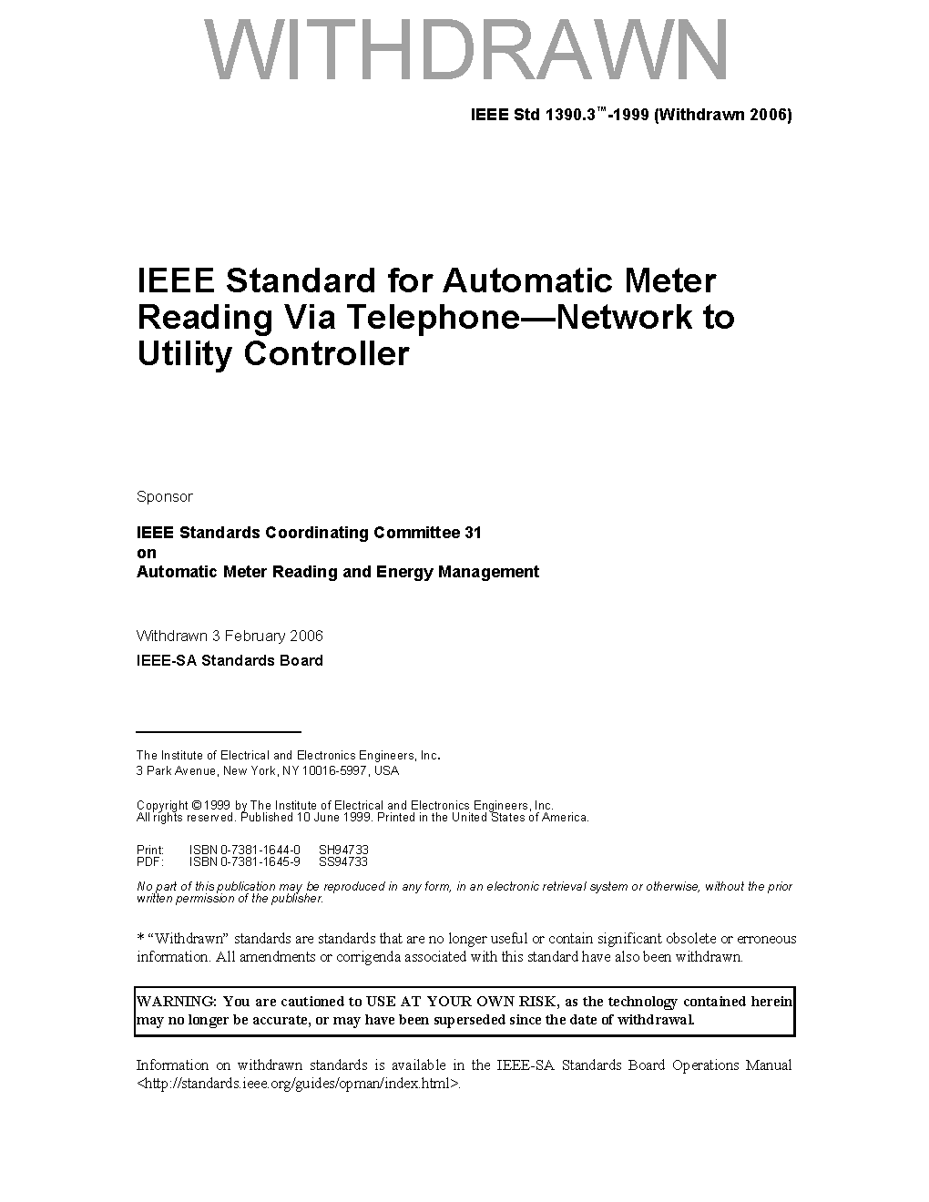 Withdrawn Standard. Withdrawn Date: Feb 06, 2006.