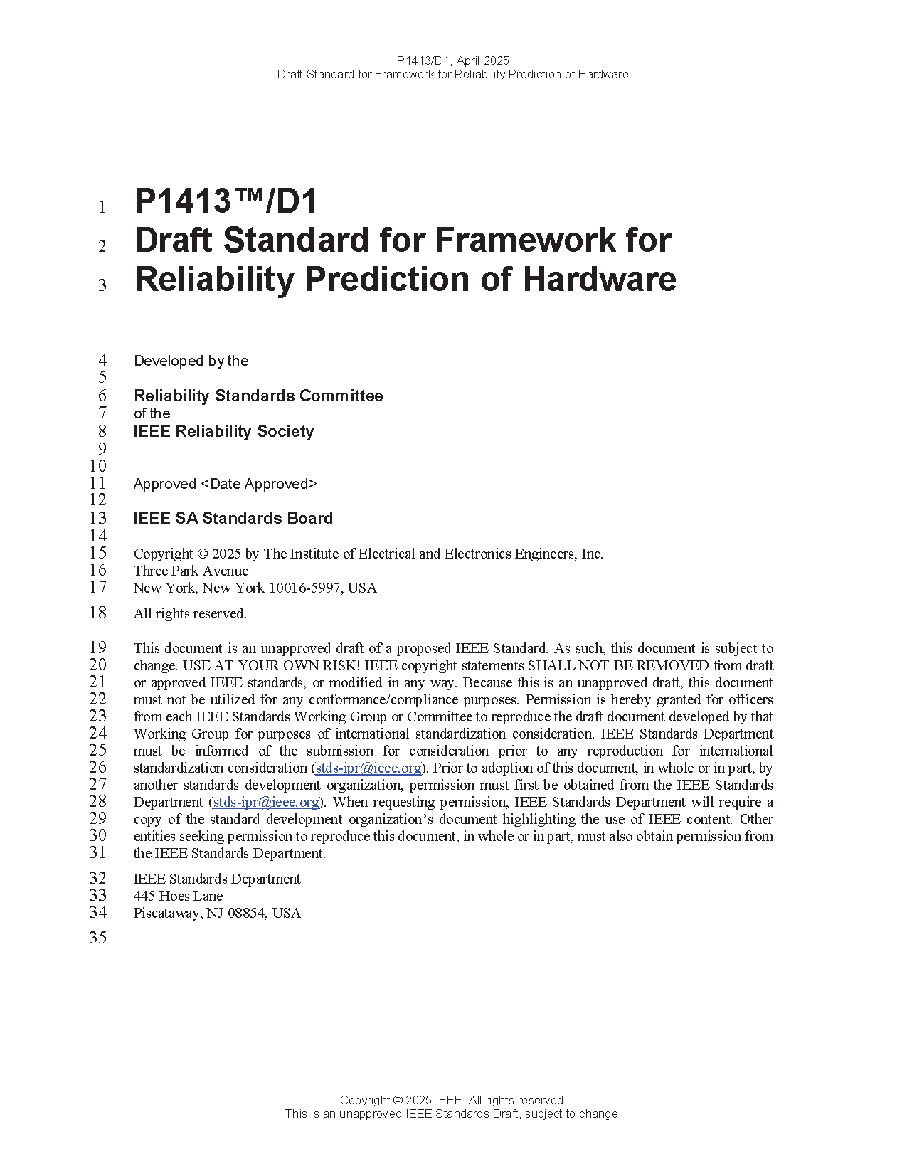 IEEE Standard Framework for Reliability Prediction of Hardware