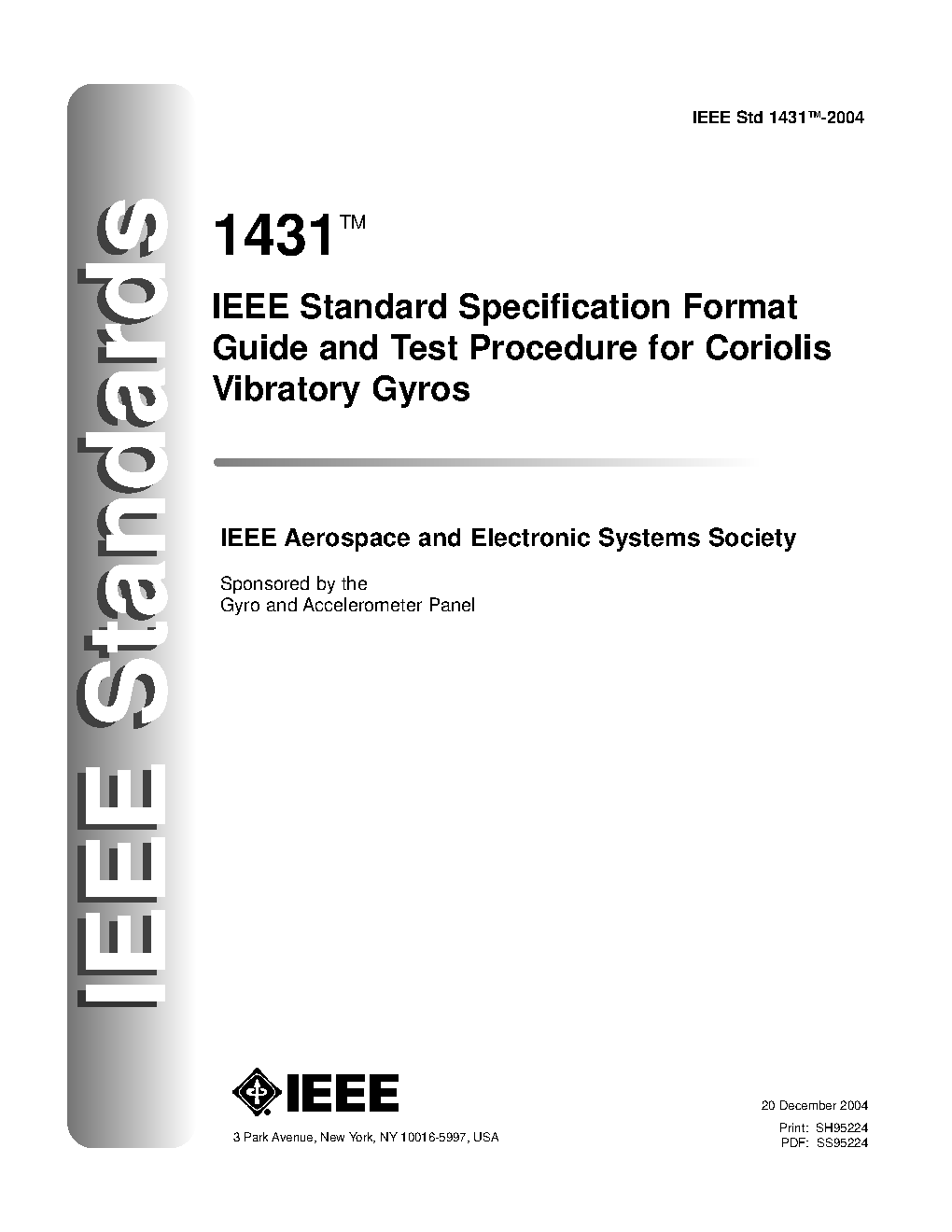 IEEE Standard Specification Format Guide and Test Procedure for Coriolis Vibratory Gyros
