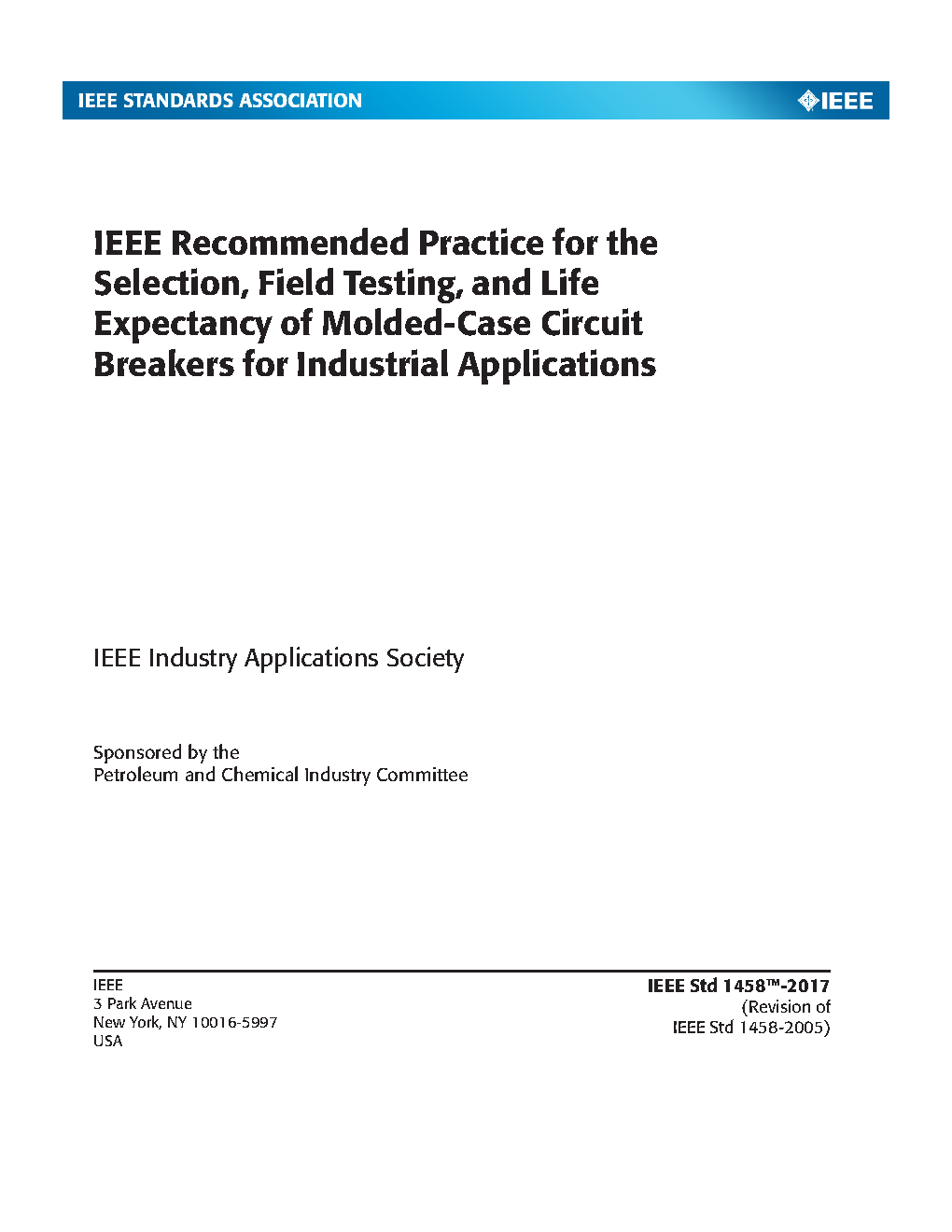This document provides a recommended practice for the selection, application, and determination of the remaining life in molded-case circuit breakers used in industrial applications.