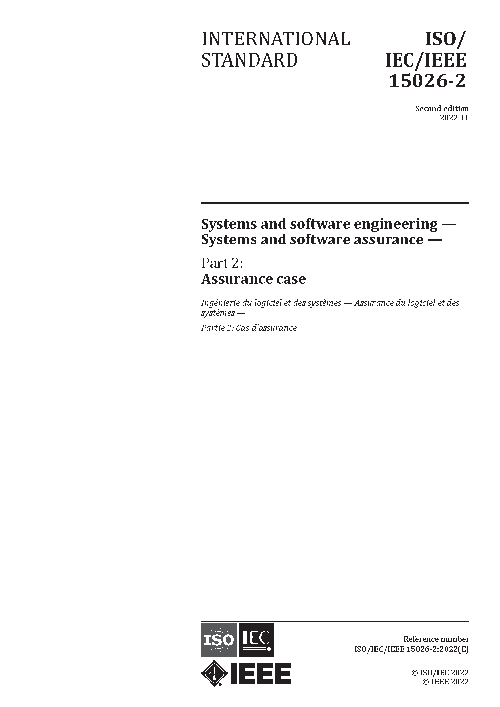 This part of ISO/IEC 15026 specifies minimum requirements for the structure and contents of an assurance case. An assurance case includes a top-level claim for a property of a system or product (or set of claims), systematic argumentation regarding this claim, and the evidence and explicit assumptions that underlie this argumentation. Arguing through multiple levels of subordinate claims, this structured argumentation connects the top-level claim to the evidence and assumptions. This part of ISO/IEC 15026 does not place requirements on the quality of the contents of an assurance case. Rathere, it places requirements on the existence of the contents and structure of an assurance case. While several notations and slightly varying terminologies are currently used in practice, this part of ISO/IEC 15026 does not require the use of a particular terminology or graphical representation. Likewise, it places no requirements on the means of physical implementation of the data, including no requirements for redundancy or co-location.