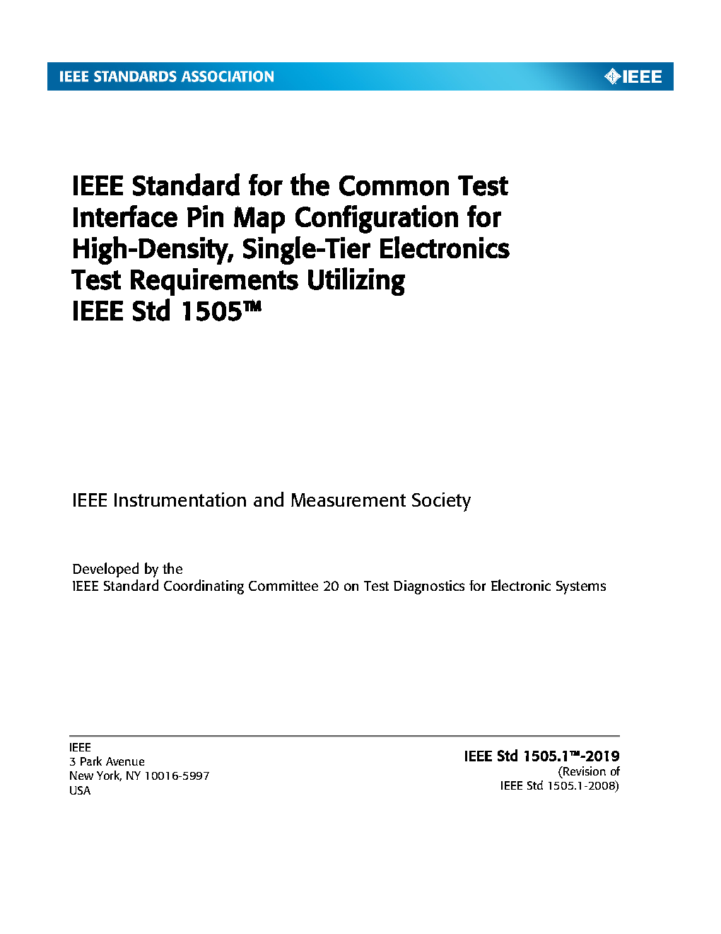 IEEE Standard for the Common Test Interface Pin Map Configuration for High-Density, Single-Tier Electronics Test Requirements Utilizing IEEE Std 1505