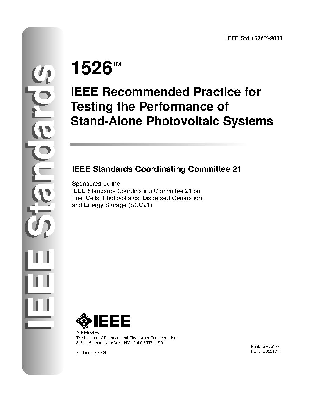 IEEE Recommended Practice for Testing the Performance of Stand-Alone Photovoltaic Systems