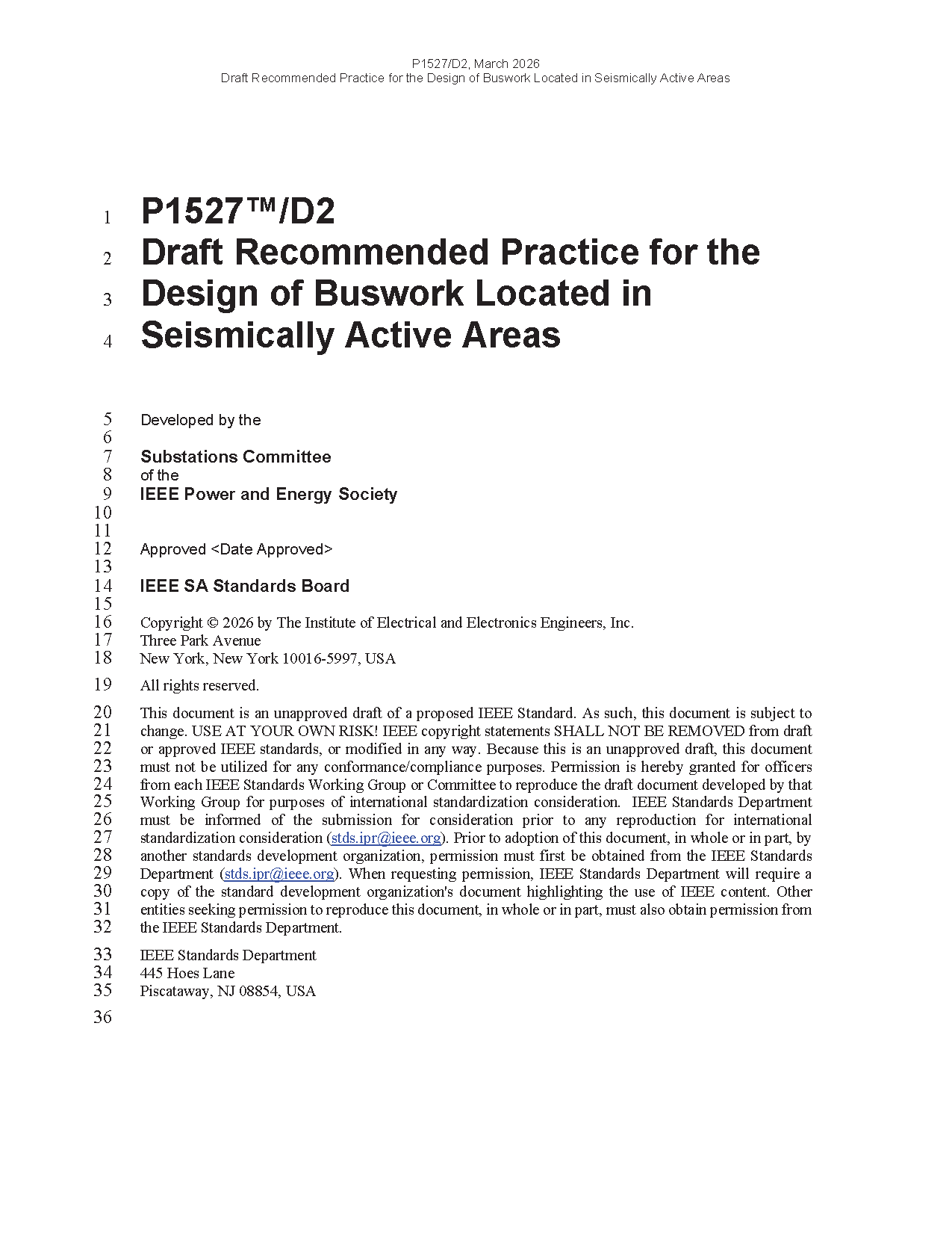This document provides recommended practices to give guidance to the substation engineer regarding seismic considerations in the engineering and design of buswork, and to provide engineers and equipment manufacturers with the knowledge of the dynamic effects of connections on interconnected equipment during seismic events.