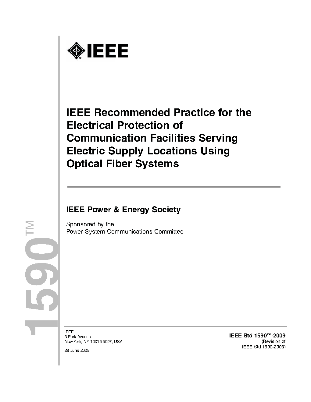 This Recommended Practice presents engineering design procedures for the electrical protection of optical fiber communication facilities serving, or connected to, electric supply locations. Other telecommunication alternatives, such as radio and cable with metallic members are excluded from this document.