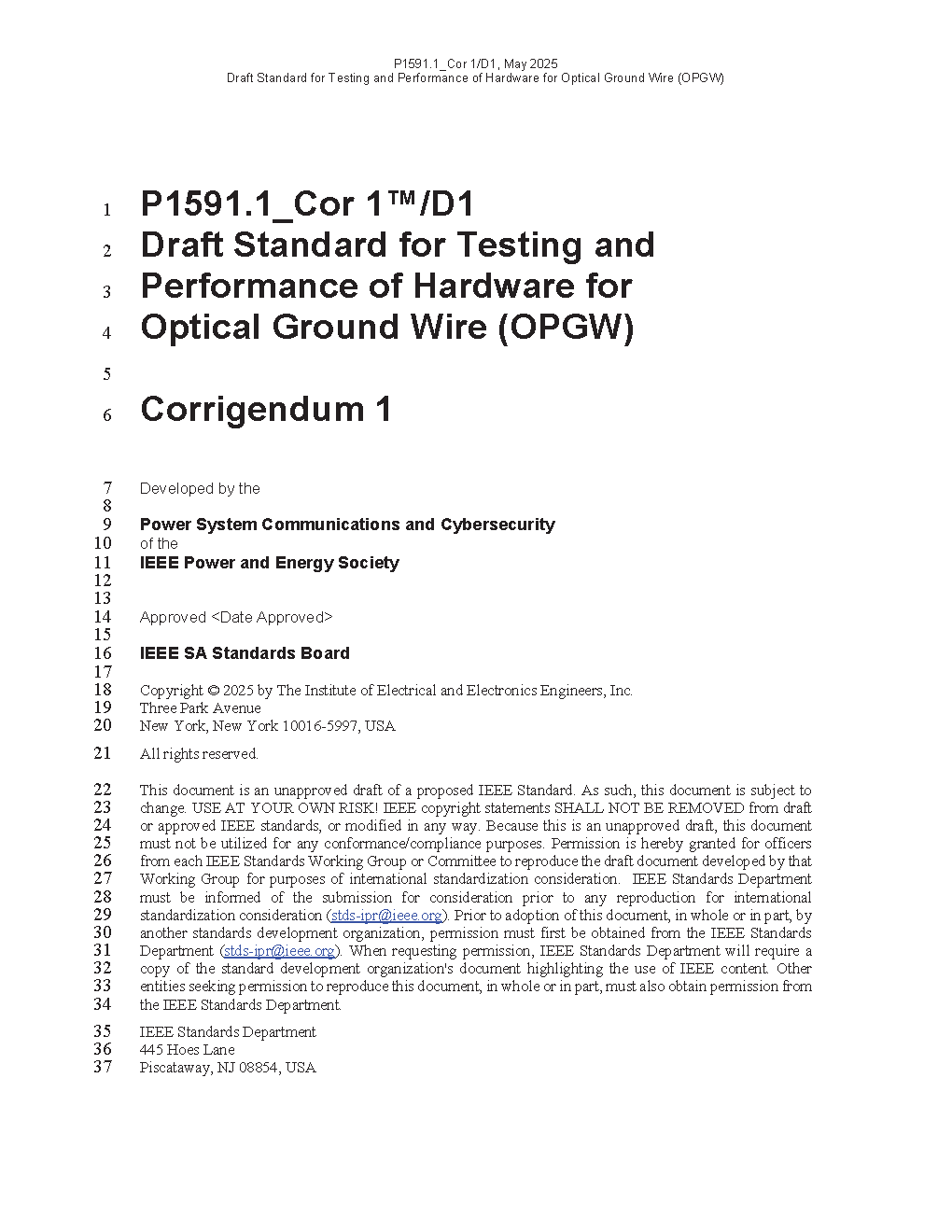 IEEE Standard for Testing and Performance of Hardware for Optical Ground Wire (OPGW)