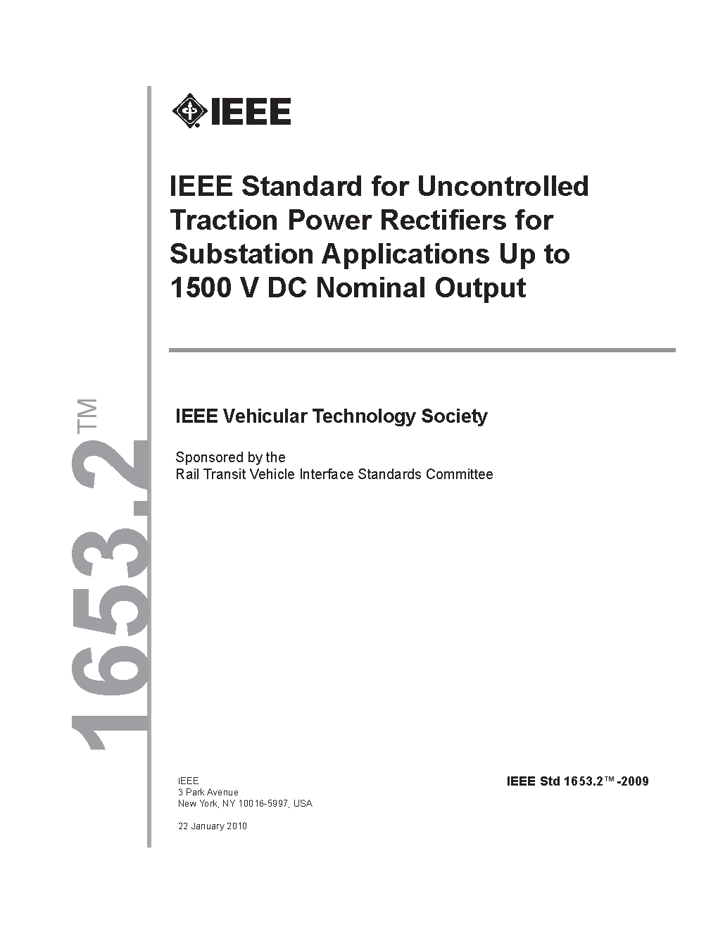 This standard defines the terminology, circuit arrangements, service ratings, performance characteristics, and test procedures unique to uncontrolled power rectifiers for transportation substation (traction) application. It also provides recommended design and application guidelines.
