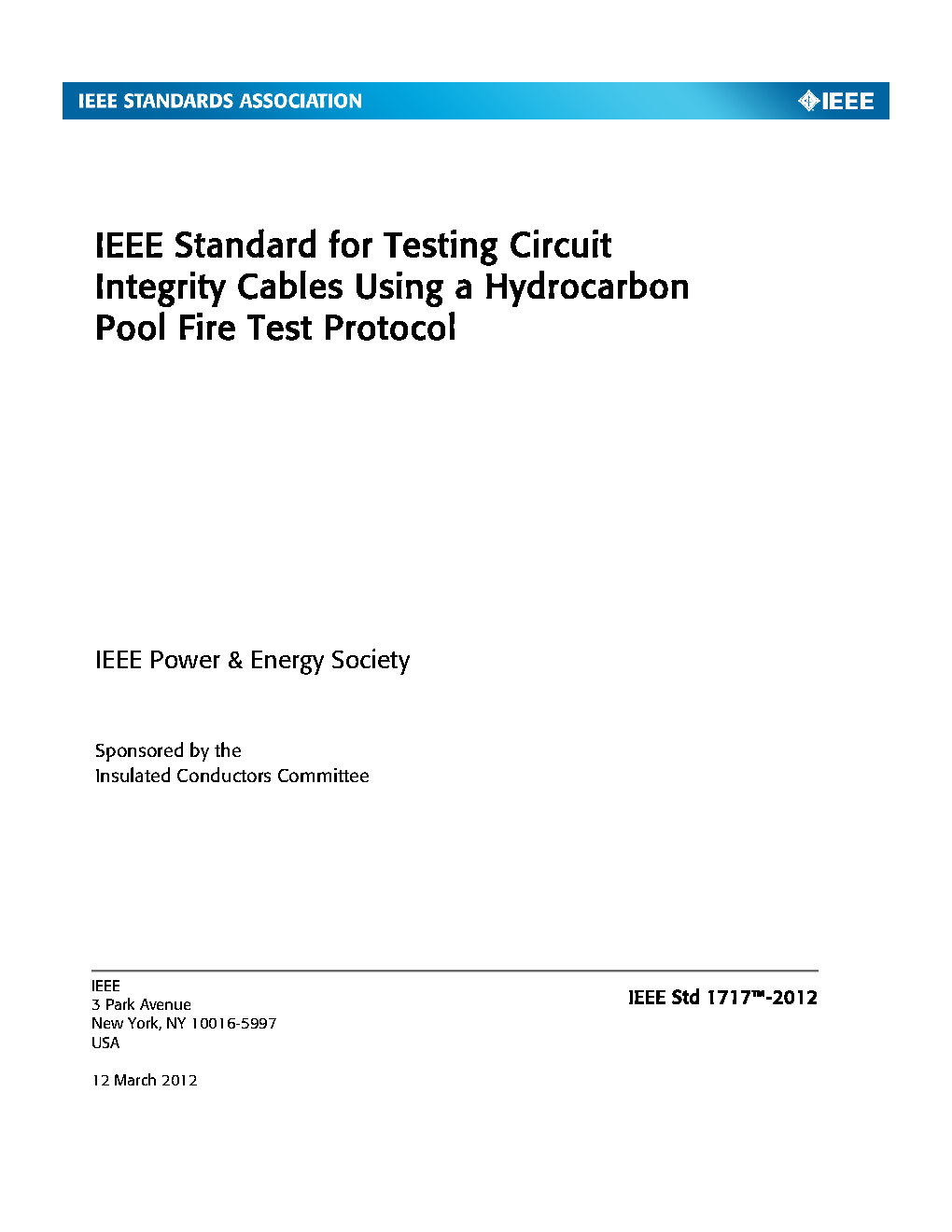 This standard provides cable and/or system requirements and methods for performing circuit integrity tests on energized low voltage power, control, and instrumentation cables at temperatures and heat fluxes simulating a hydrocarbon pool fire.