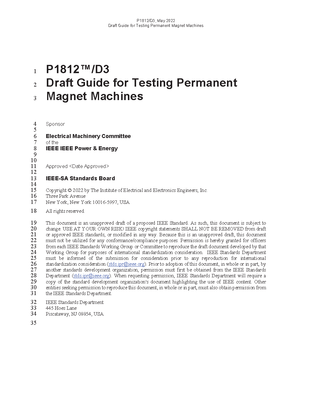 IEEE Trial-Use Guide for Testing Permanent Magnet Machines