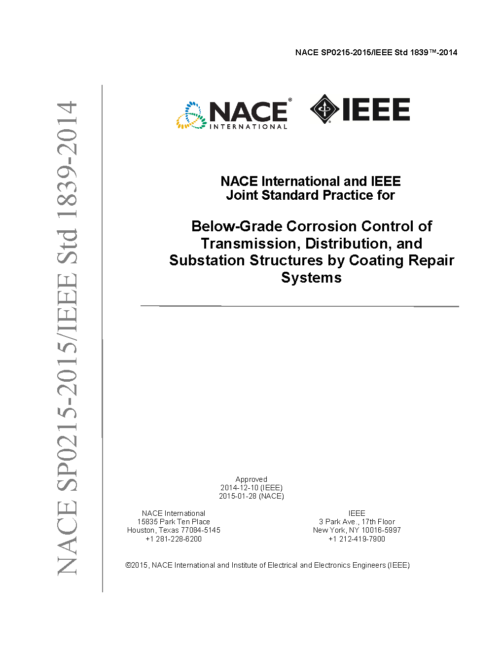 NACE International and IEEE Joint Standard Practice for Below-Grade Corrosion Control of Transmission, Distribution, and Substation Structures by Coating Repair Systems