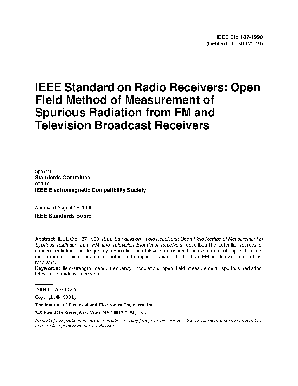 This standard is needed to assure consistent measurement procedures for determining Conducted and Radiated emissions in Television and FM Broadcast Receivers.