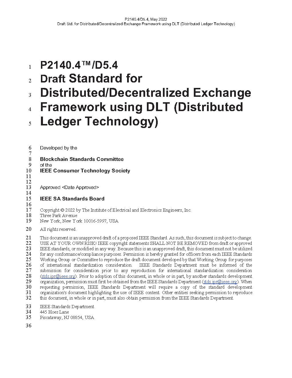 IEEE Standard for Distributed/Decentralized Exchange Framework using Distributed Ledger Technology (DLT )