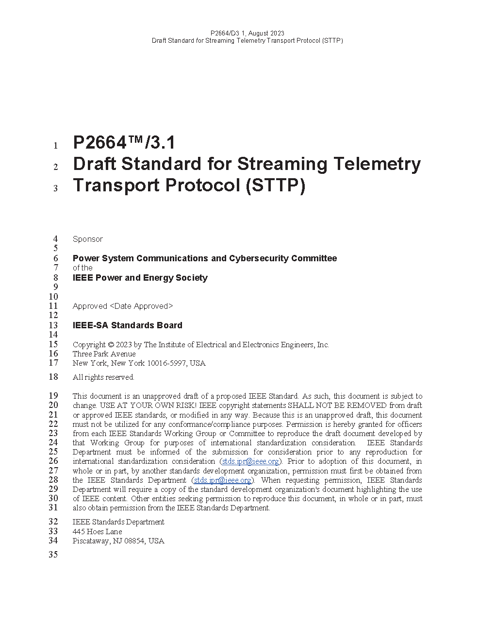The purpose for this standard is to provide a streaming data protocol meeting the specific requirements of power systems which include reliability, security, scalability, bandwidth management, and flexible configuration. Existing protocols do not address all of these requirements. This protocol is intended to supplement or replace existing protocols used for synchrophasor data.