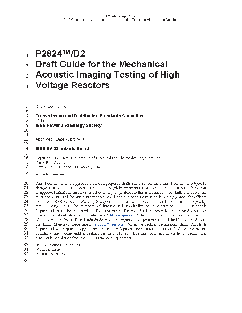 IEEE Draft Guide for Testing Mechanical Acoustic Imaging of High Voltage Reactors