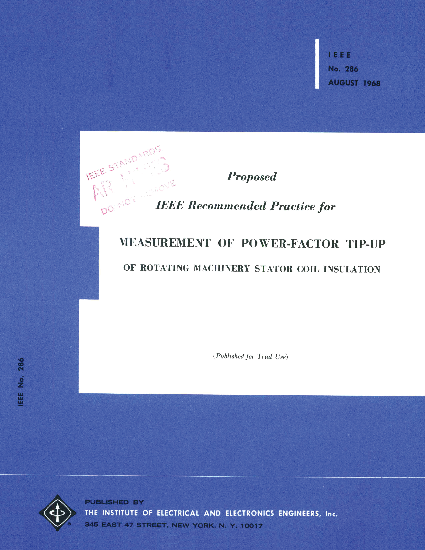 The power factor tip-up testing of stator coils and bars for use in large electric machineryis covered in this recommended practice.
