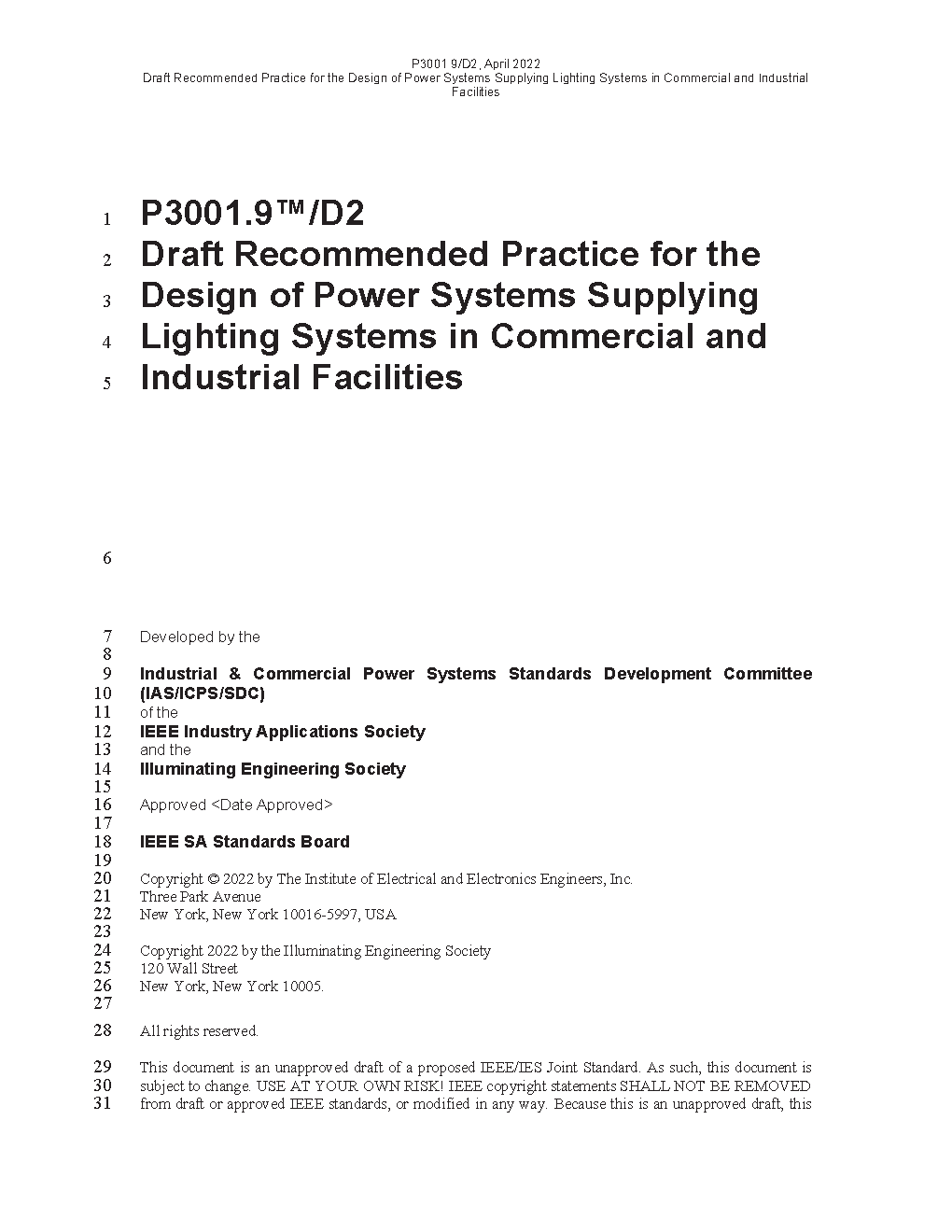 IEEE/IES Recommended Practice for the Design of Power Systems Supplying Lighting Systems in Commercial and Industrial Facilities