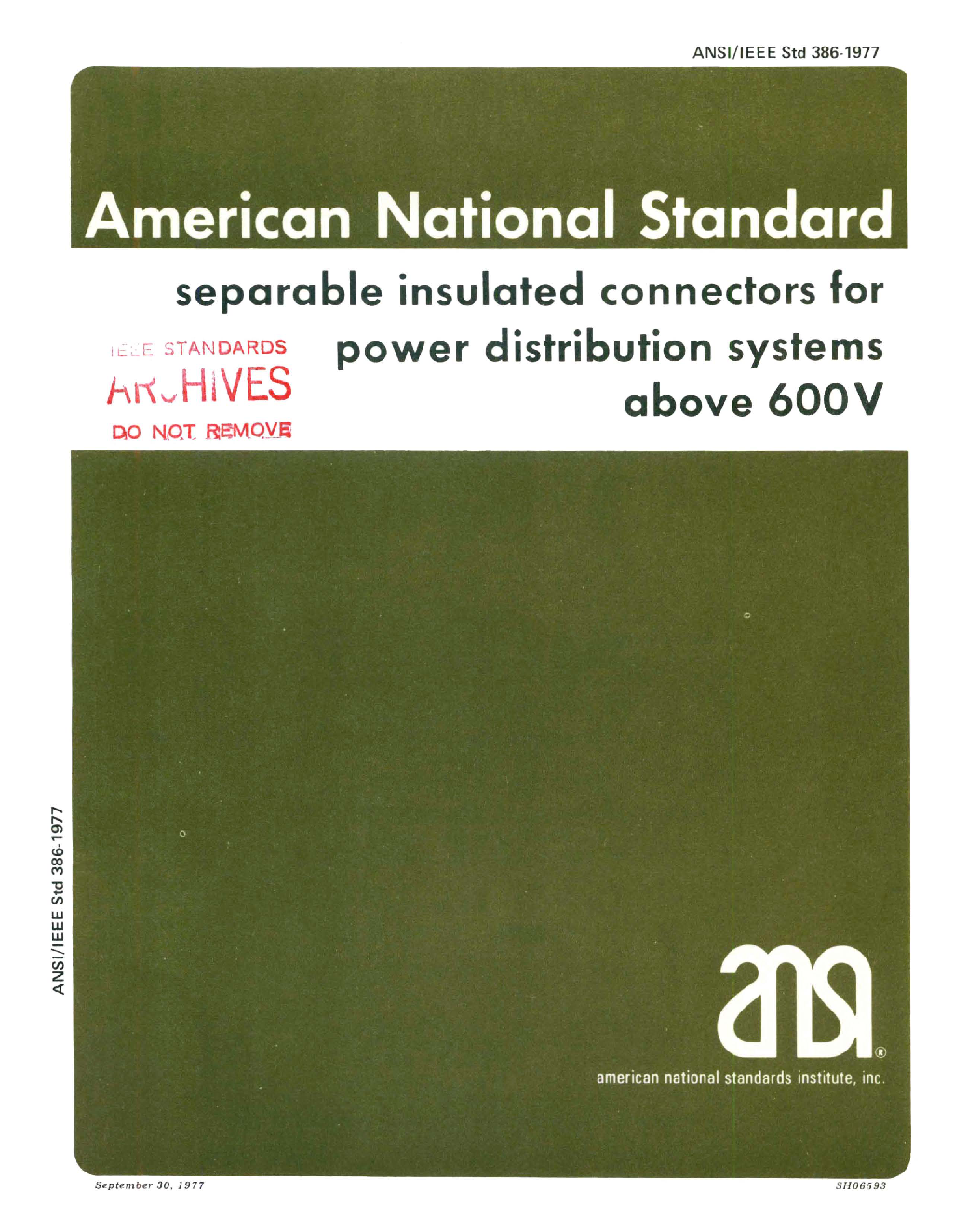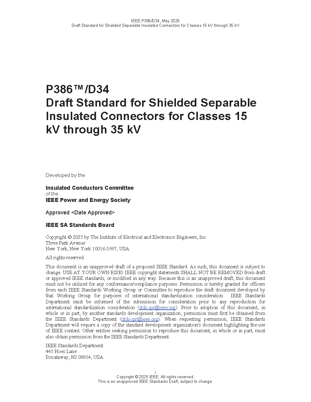 This standard establishes definitions, service conditions, ratings, interchangeable construction features, and tests for loadbreak and deadbreak separable insulated connector systems rated 900 A or less for use on shielded power distribution systems rated 2.5 kV through 35 kV.