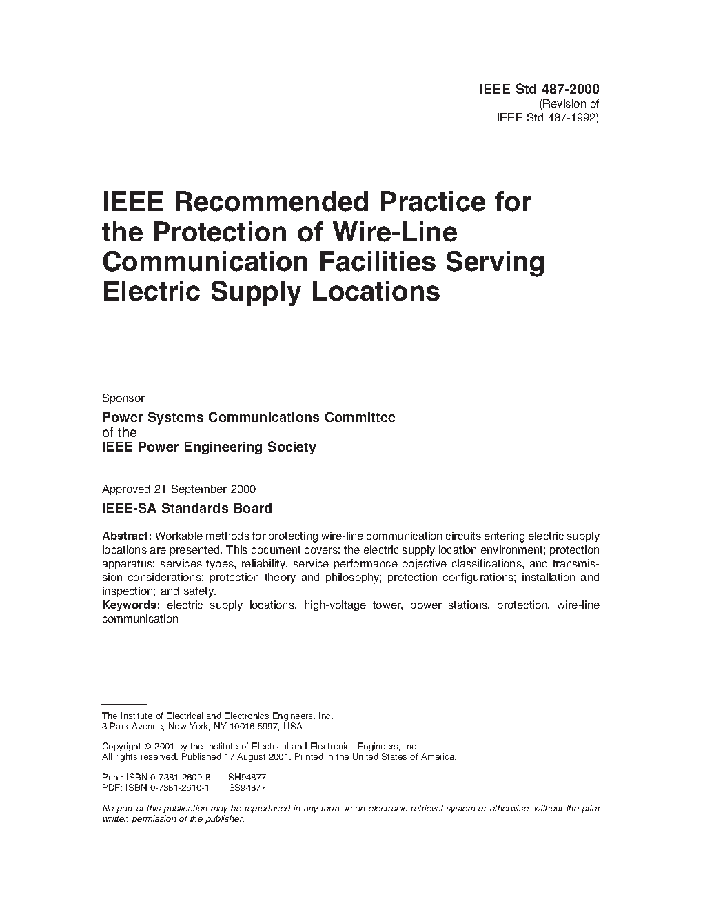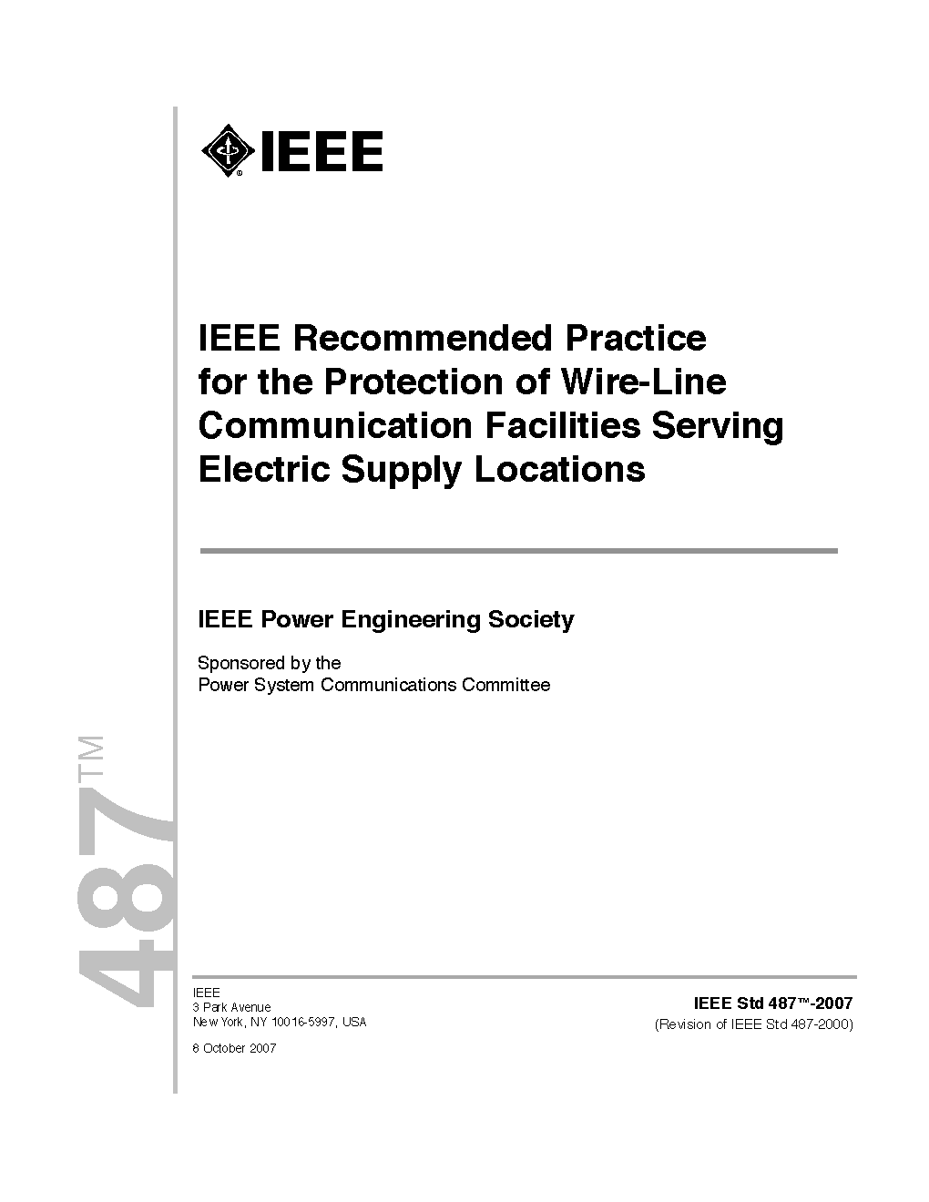 This standard presents general considerations for the electrical protection of telecommunications facilities serving electric supply locations. This standard contains material that is common to the IEEE 487 family of standards (i.e., dot-series) including fundamental protection theory and basic electrical protection concepts and designs. In general, special protective measures, handling procedures, and administrative procedures are necessary to provide electrical protection against damage to telecommunications facilities and equipment, maintain reliability of service, and ensure the safety of personnel.