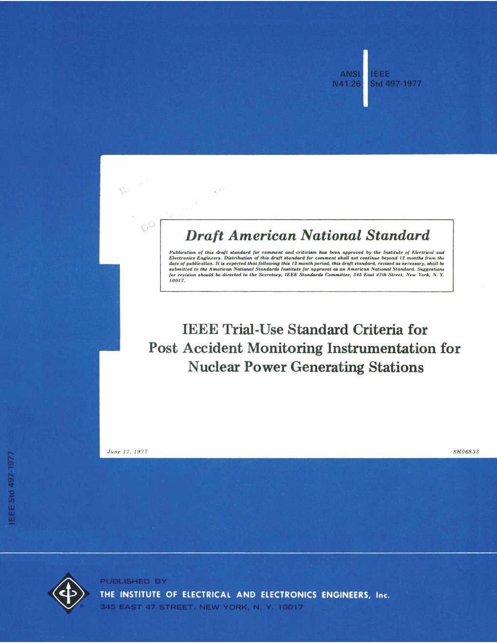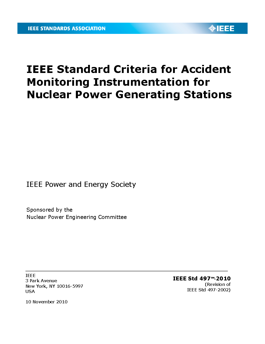 This standard contains the functional and design criteria for accident monitoring instrumentation for nuclear power generating stations. This standard is intended for new plant designs and for operating nuclear power generating stations desiring to perform design modifications.