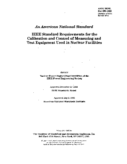 IEEE Standard Requirements for the Calibration and Control of Measuring and Test Equipment Used in Nuclear Facilities