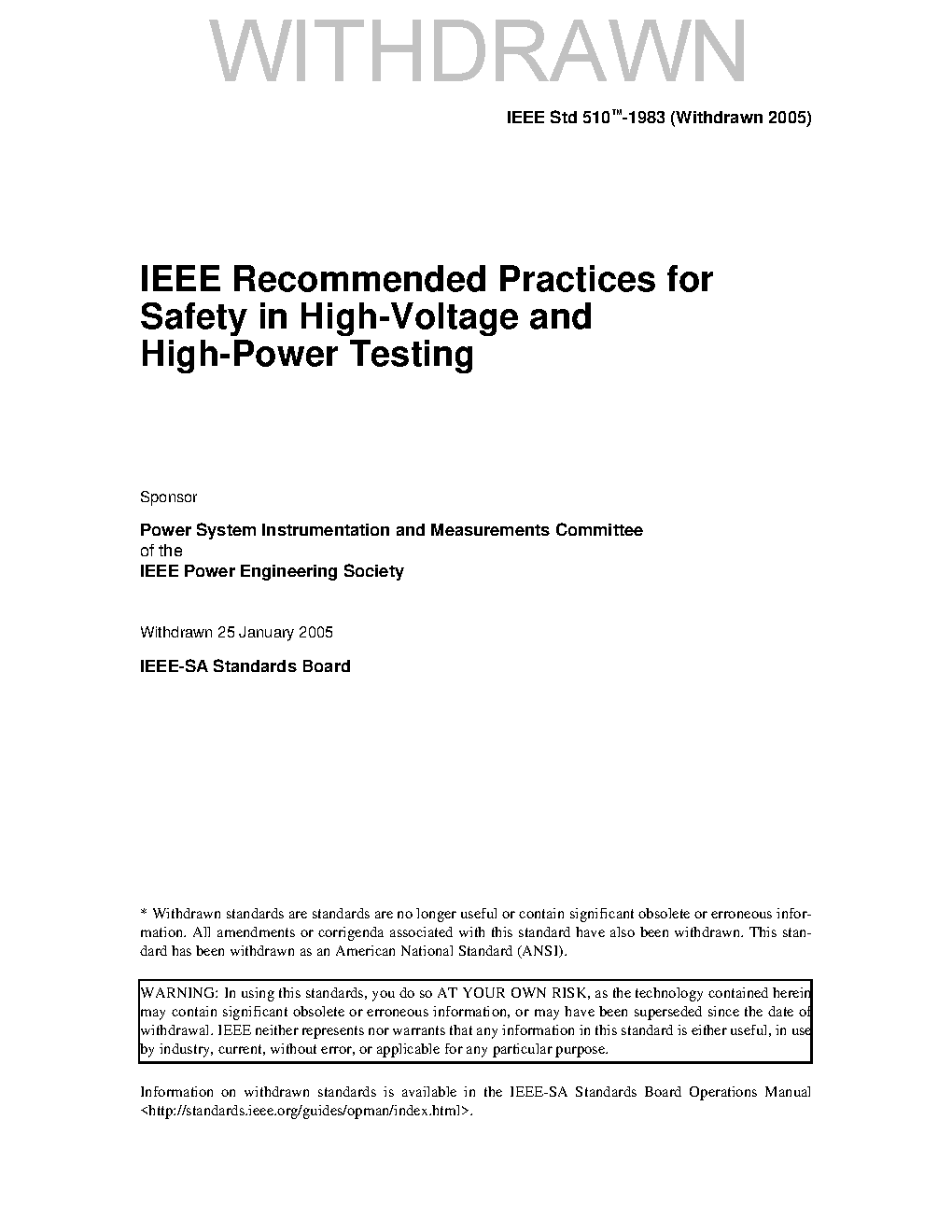 IEEE Recommended Practices for Safety in High-Voltage and High-Power Testing
