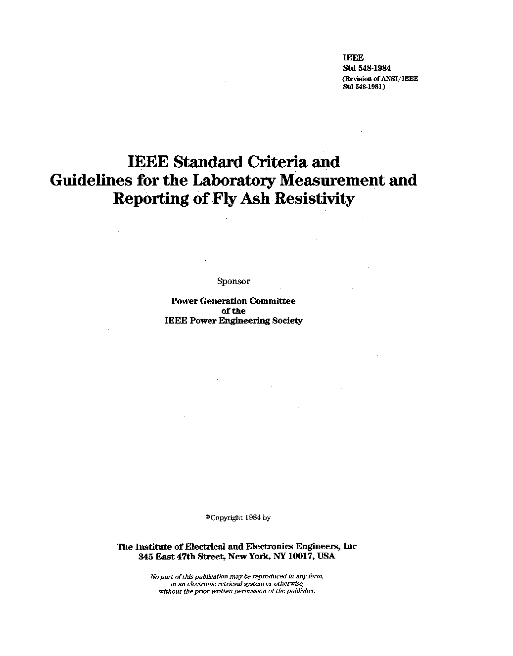 IEEE Standard Criteria and Guidelines for the Laboratory Measurement and Reporting of Fly Ash Resistivity