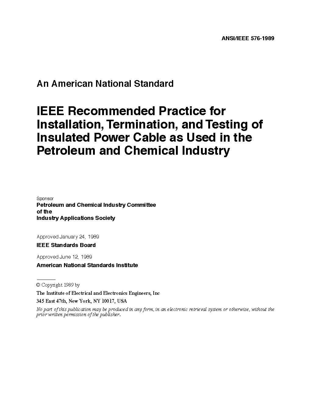 IEEE Recommended Practice for Installation, Termination, and Testing of Insulated Power Cable as Used in Industrial and Commercial Applications